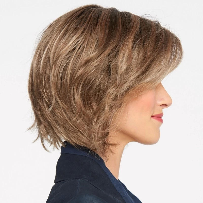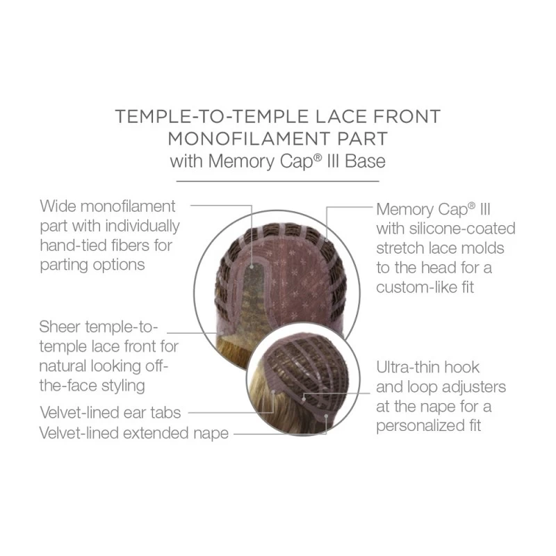 Look no further because this cut checks all the boxes. Sophisticated layers, bouncy body, and let’s not forget a perfect diagonal bang. With an extended lace front and mono side part, looking real is really easy. Simply brush the part, curve the ends under, and go. But look out! With Curves Ahead you’ll have lots of compliments in your path!