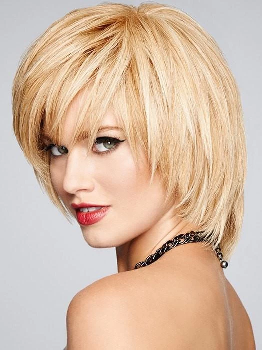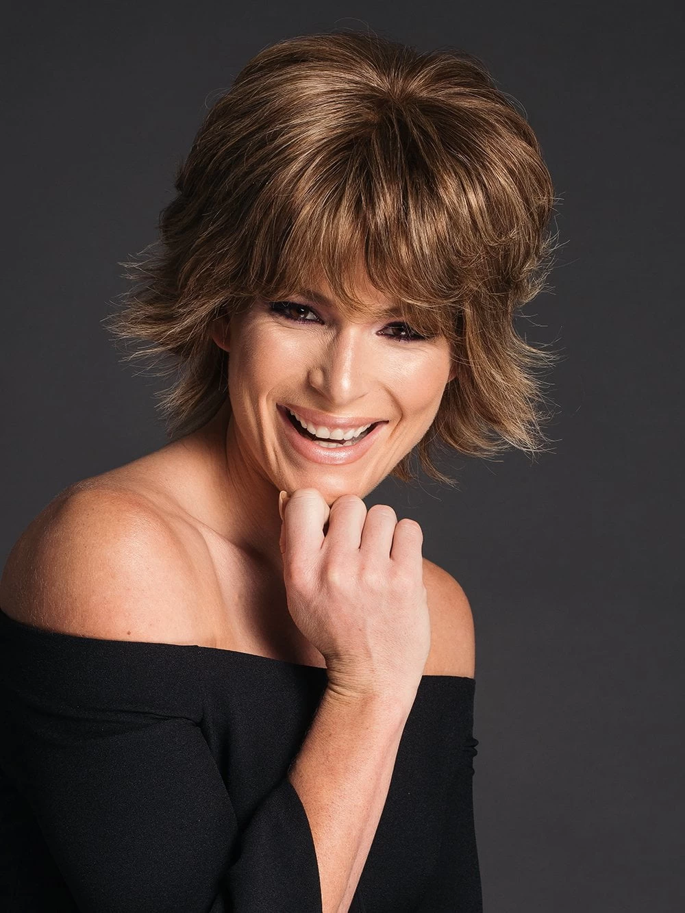 Applause by Raquel Welch is a supremely natural human hair wig. All face shapes are enhanced with this layered, short cut. The cap construction was designed to give you the ultimate in natural look and feel. It includes a 100% hand-tied cap with a lace front and monofilament top. Wear it soft and feathery or tousled and flared – human hair will allow you to create either look.
