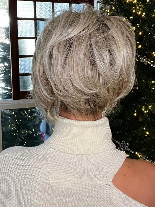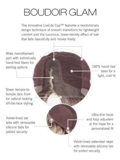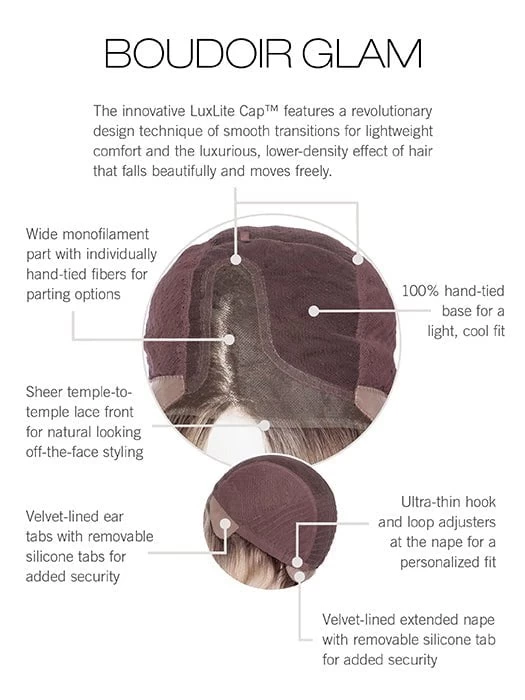 Prepare to be captivated by the edgy A-line look of Boudoir Glam by Raquel Welch. The salon-precise tapered sides create a sleek and modern silhouette that perfectly blends with a dramatic side-swept fringe. The layers throughout the hair add texture and movement, creating a natural and effortless look. The lightweight construction ensures that the hair feels comfortable and easy to wear.