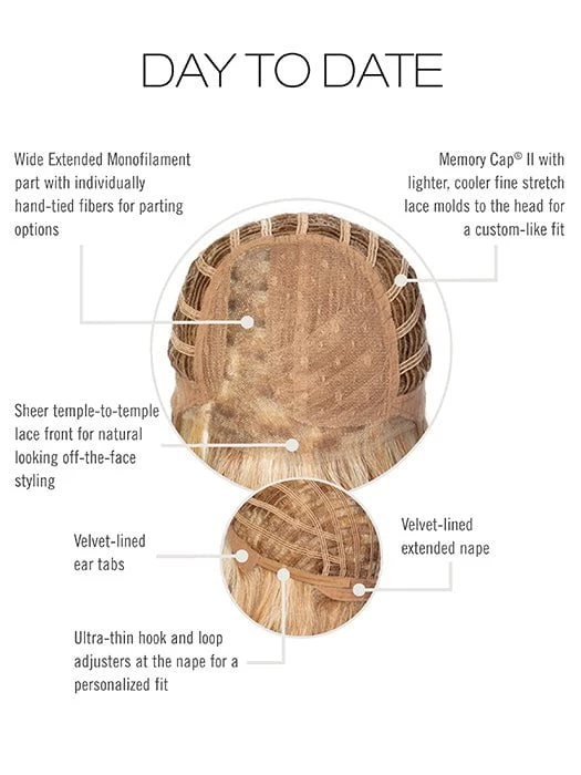 Day to Date by Raquel Welch is perfect for you if you love an “S” curl, longer lengths, and a 1940’s femme fatale style. This versatile wig has endless styling options, especially with the Tru2Life heat friendly synthetic fibers that allow you to style with heat tools. Also, the temple-to-temple lace front allows you to wear the wig in a half up daytime look, or let down for a night out. The monofilament part, that goes all the way to the crown, provides the appearance of natural hair growth from the scalp.