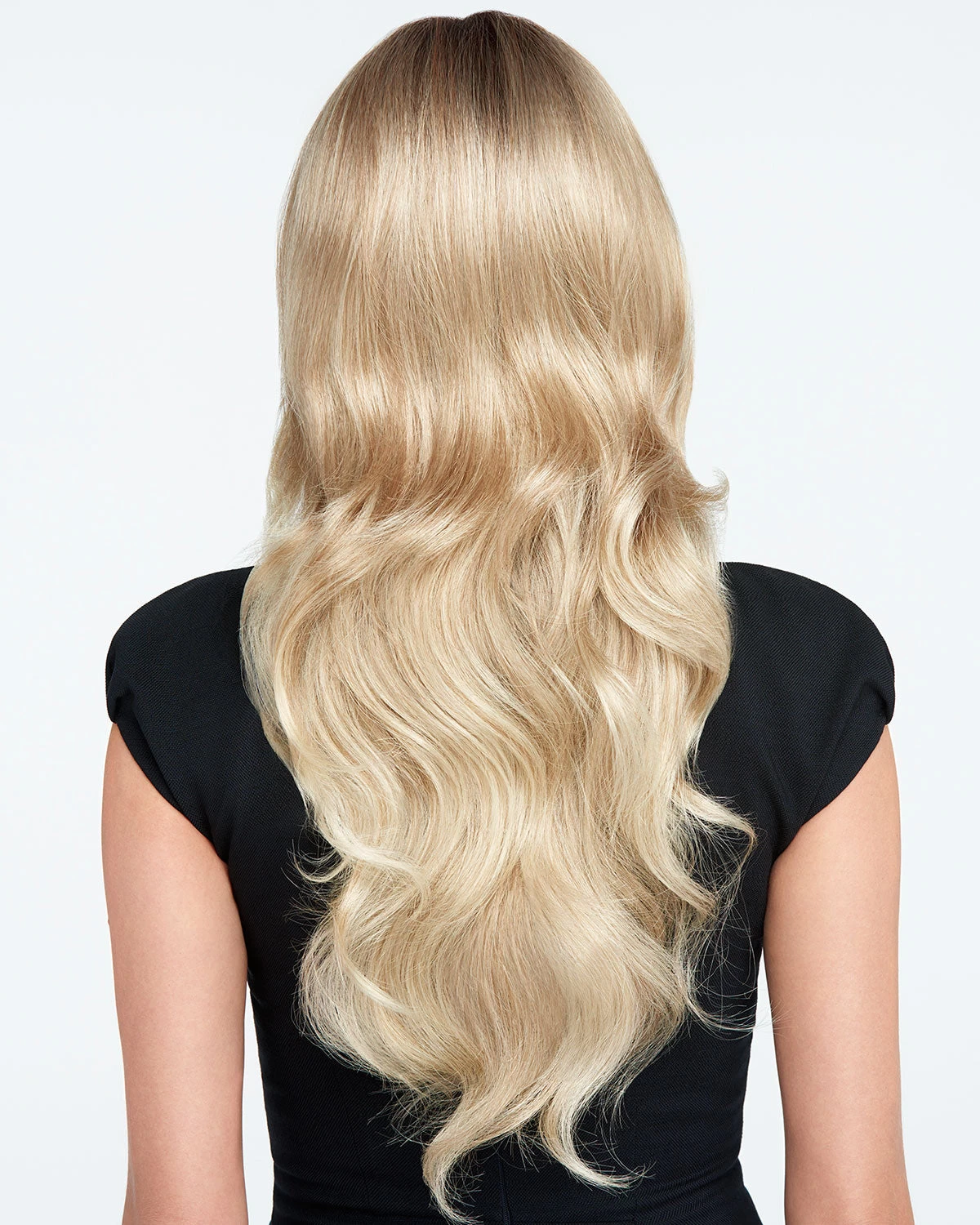 The Down Time Wig by Raquel Welch is exquisitely long and lush. This style is the epitome of classic length and wave. Our longest, hand-knotted wig to date, this trending look combines the natural looking hairline of a Sheer Indulgence™ lace front monofilament top for optional off-the-face styling with the cool, light comfort of a 100% hand-knotted base. The result is the ultimate in length and style without the time and effort it would take to style your own hair.