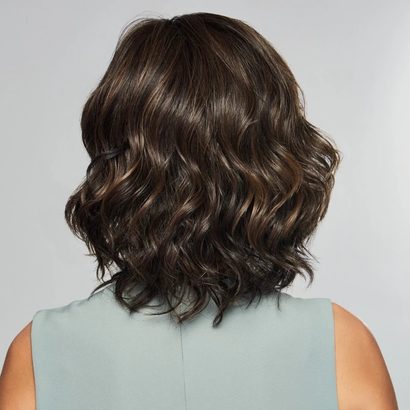 You can welcome the sun with Editor’s Pick, a loose beachy wave bob style, that features a temple to temple lace front and monofilament top for styling versatility. This layered bob has softly waved bangs and layers that easily blend for either a finger-style look or fuller waves with brushing. Editor’s Pick is made with heat-friendly synthetic hair.