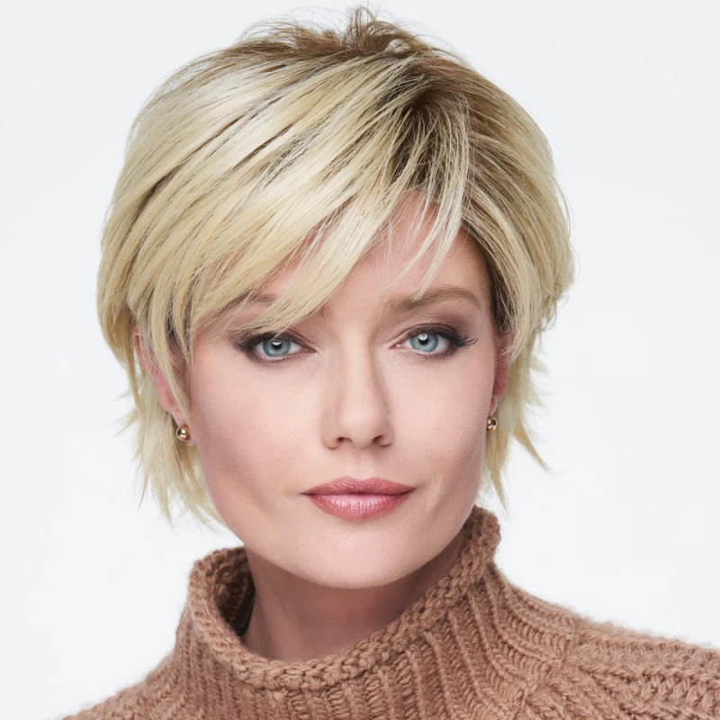 Lighten up and loosen up with this carefree multi-layered crop! A tapered eyelash bang, longer side lengths, and the piecey nape can be worn smooth or the texture can be pieced out with a styling paste. Easy to manage, easy to style, fashion to go!