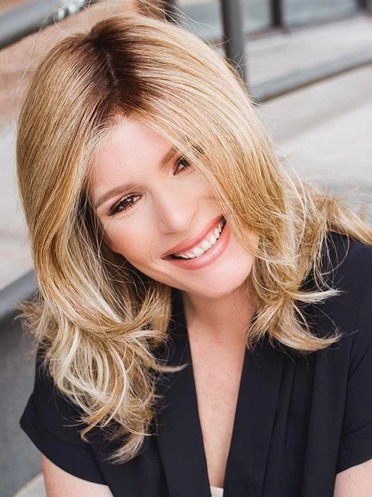 The Free Time Wig by Raquel Welch is the ultimate experience in a longer length, below-the-shoulder style is loaded with modern wave and movement. The Sheer Indulgence™ temple-to-temple lace front monofilament top allows for off-the-face styling and varied parting options and the 100% hand-knotted base affords complete styling freedom and an unbelievably light feel. The softly waved top and sides seamlessly blend into tighter barrel waves at the perimeter, making this knockout look both glamorous and easily wearable at the same time.