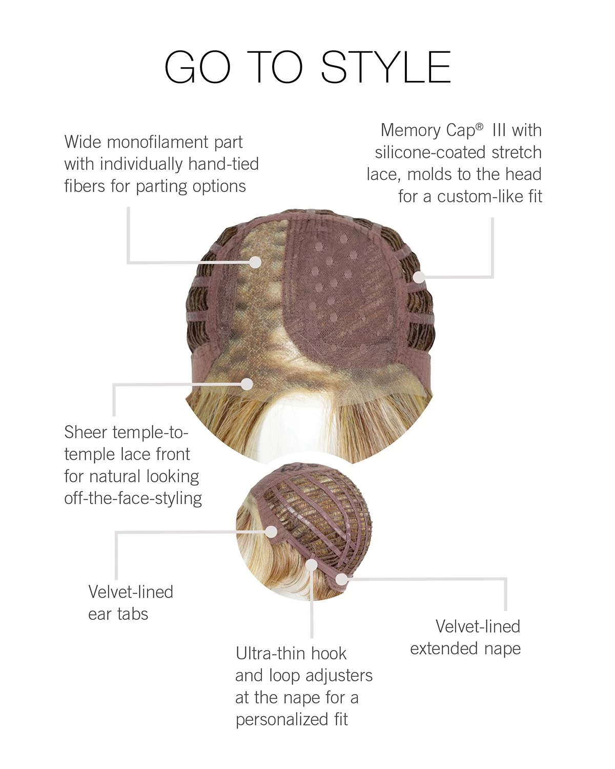 Like it’s name suggests, this short bob wig will be your signature look. Go To Style by Raquel Welch features an extended lace front and a monofilament part for a natural looking hairline. This wig’s layers look upscale and modern, balancing a casual look for day time or with some light styling, a polished look for the evening.