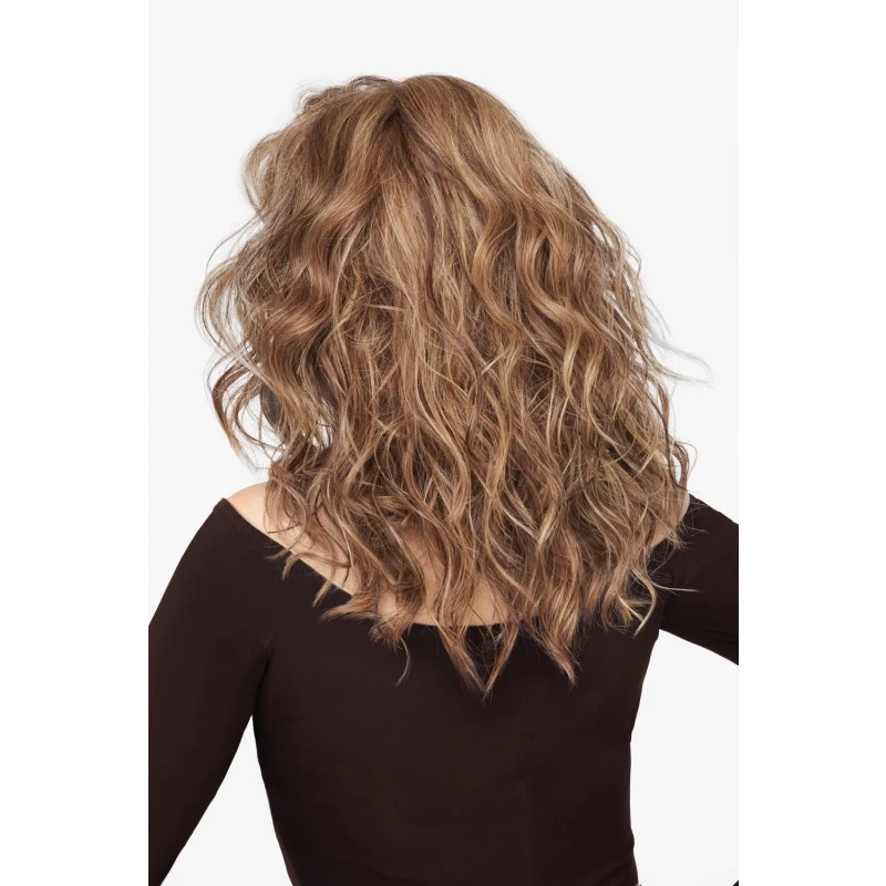 Power on with this long, layered look! The soft, casual beach wave texture is stylish enough for day-wear and shifts into high-gear glamour for evening. Temple to temple lace allows you style half up, half down, or pull into a low ponytail.