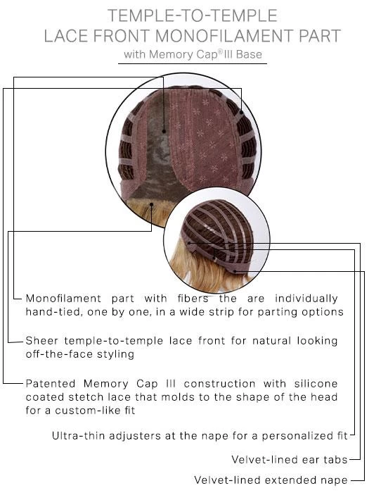 - Memory Cap® III – Constructed with resilient stretch lace coated with flexible silicone along the back and sides for a superbly comfortable and secure fit that maintains its shape over time and molds to the head.