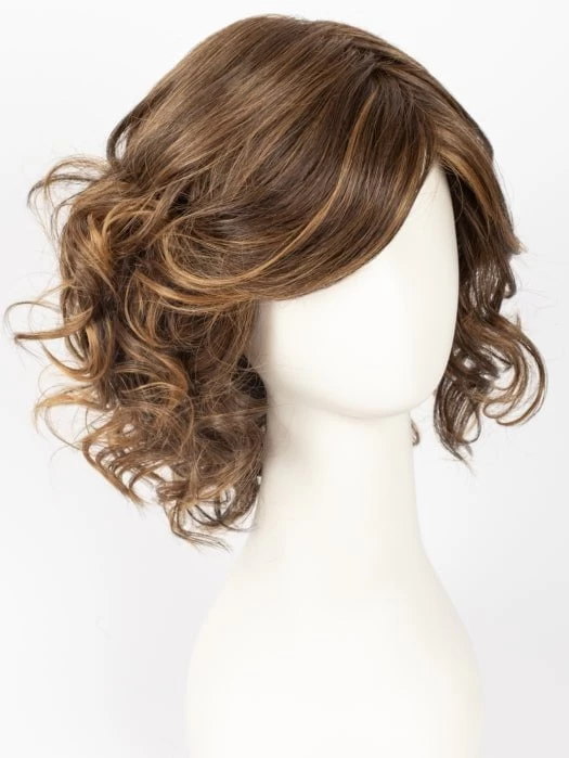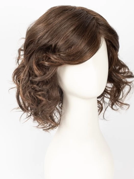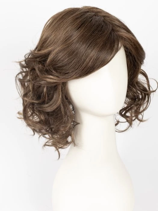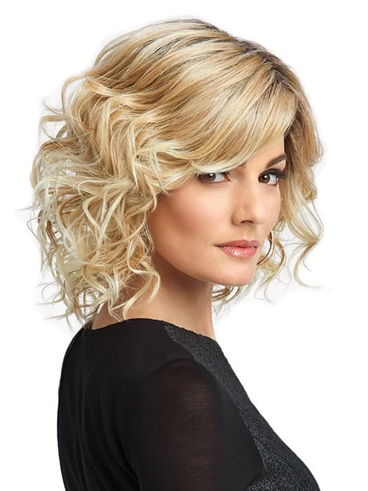 It Curl by Raquel Welch is a shoulder-length layered bob with waves that create a voluminous look. Its sheer lace front provides an off-the-face styling option that is wearable and flattering. The slightly graduated layering at the nape gives a beautifully round, sculpted look to the overall silhouette, while its free-formed, barrel wave curls can be scrunched for added texture or brushed through for a softer look.