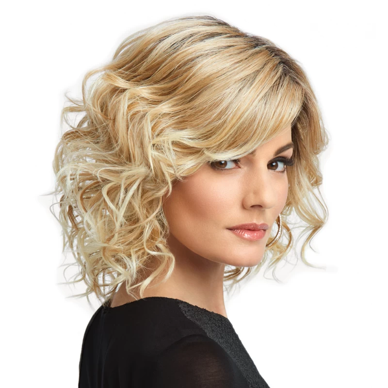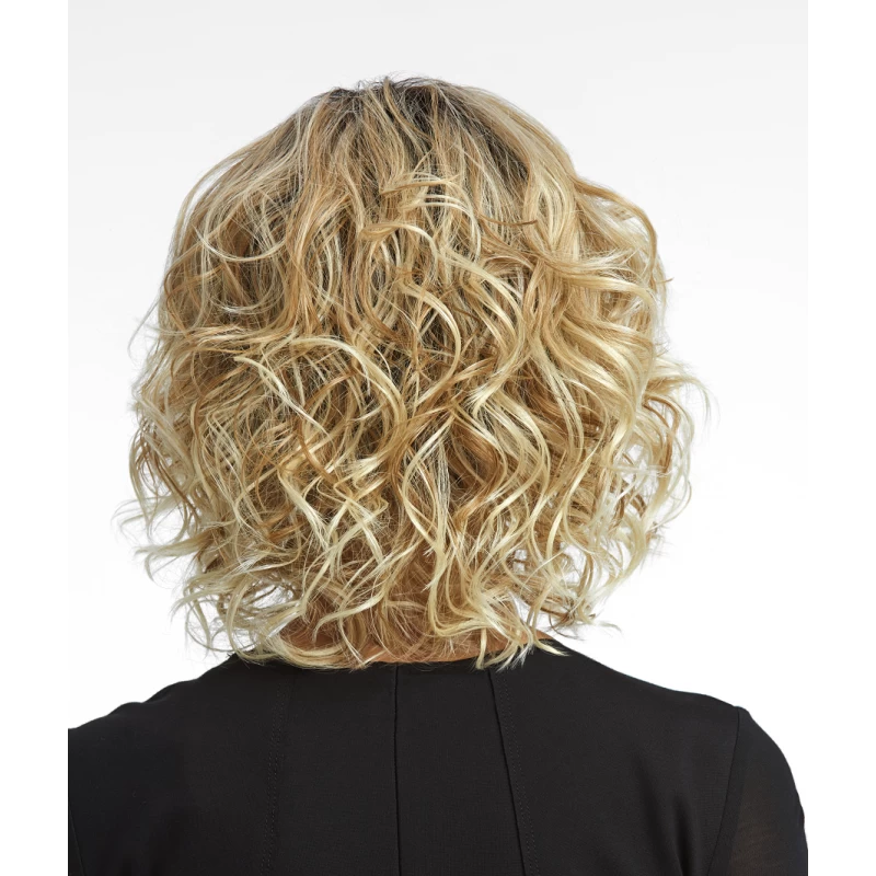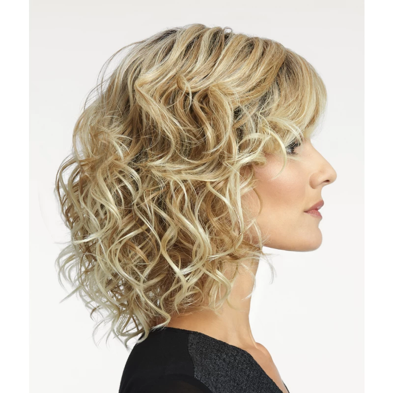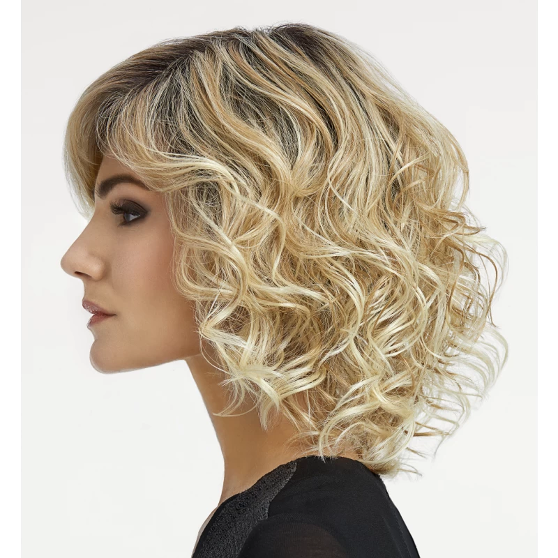 This to-the-shoulder, layered bob offers an abundance of free-formed, barrel waved curls that can be scrunched for added texture or brushed through for a softer look. The slightly graduated layering at the nape gives a beautifully round, sculpted look to the overall silhouette, while the sheer lace front provides an off-the-face styling option.