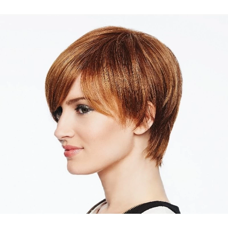 Reflecting a contemporary salon trend, this short, asymmetrical cut includes added length on the right top and side and expertly tapered layers that blend to a smooth, neck-hugging nape. Made with our patented Memory Cap® construction, this light, cool style is ready-to-wear with a quick shake right out of the box. It’s a modern style you’ll love. And the Tru2Life® heat-friendly synthetic hair can be flat-ironed, curled or blown out. For the first time, a Tru2Life style is available in our most popular Vibralite colors. Weight 2.5oz.