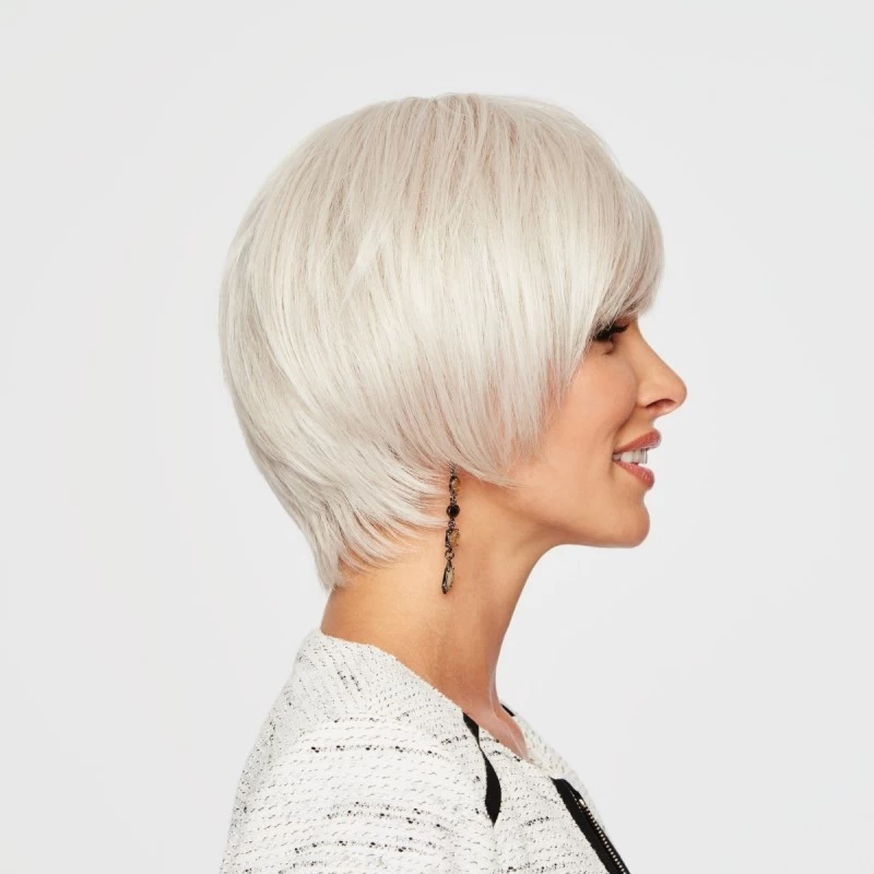 The Muse Wig from the Raquel Welch collection is a stunning straight style wig. It comes with a 100% handtied, monofilament, lace front cap that offers superior comfort and makes the wig look incredibly natural. The Muse is one of the most popular monofilament wigs, not in the least because it fits almost any face shape. Whether you have an oval, diamond, oblong or heart shaped face, these short wigs will look amazing on you. Although made out of synthetic hair, it has a wonderful and natural look and feel to it, and nobody will know you aren’t showing your real hair, unless that is something you are happy for others to know. The wig is very easy to care for and to maintain and it will always look amazing. With a 4″ bang and 7″ crown, this wig is in a short style, but it is superbly feminine. It accentuates the natural shape of your face, bringing out your inner beauty.