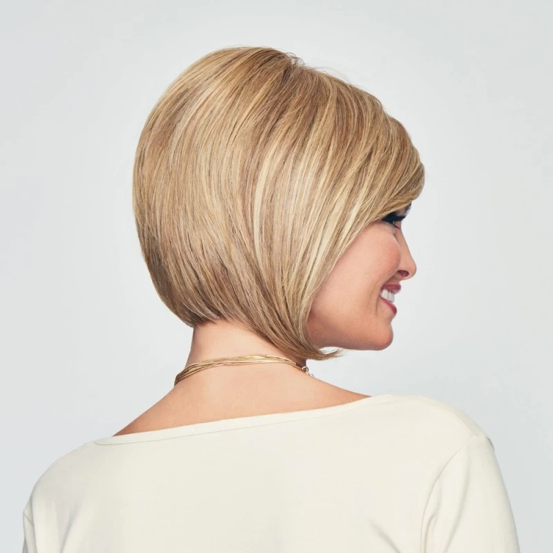 The coveted stacked bob cut is now so easy to achieve. Longer layers frame the face and jawline while the neckline is very short and tailored. With ample volume at the crown and a soft, side swept eyelash bang, this is the sophisticated cut you’ll want to wear everywhere.