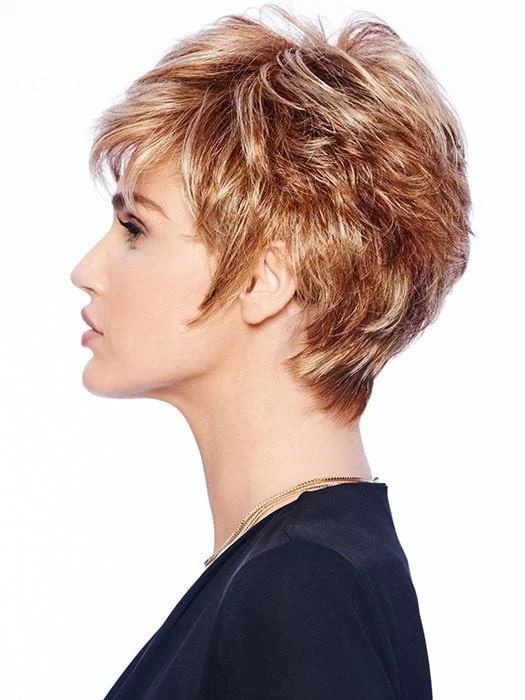 BEST SELLER | Sparkle Wig by Raquel Welch is a texturized and voluminous short wig. This short, face-framing cut includes a smooth front and top that blend into textured layers throughout the back and sides. It also features a tapered neckline. This ready-to-wear synthetic wig looks and feels like natural hair. And the open wefting in the cap creates better air ventilation, which provides more coolness on the scalp. It’s breathable and lightweight for a more comfortable fit. And it only weighs two and a quarter ounces! Sparkle comes in shades of gray.