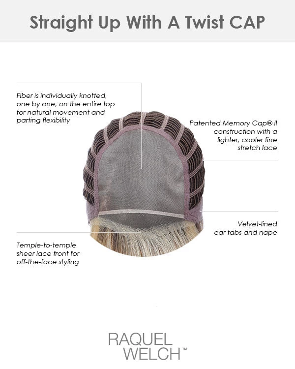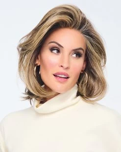 The classic bob meets modern day texture! This face-framing bob is punctuated with a softly sculpted nape that features razor cut tapering for a tailored but edgy feel. The Sheer Indulgence™ lace front monofilament top and Tru2Life heat-friendly fiber mean styling options are virtually limitless!