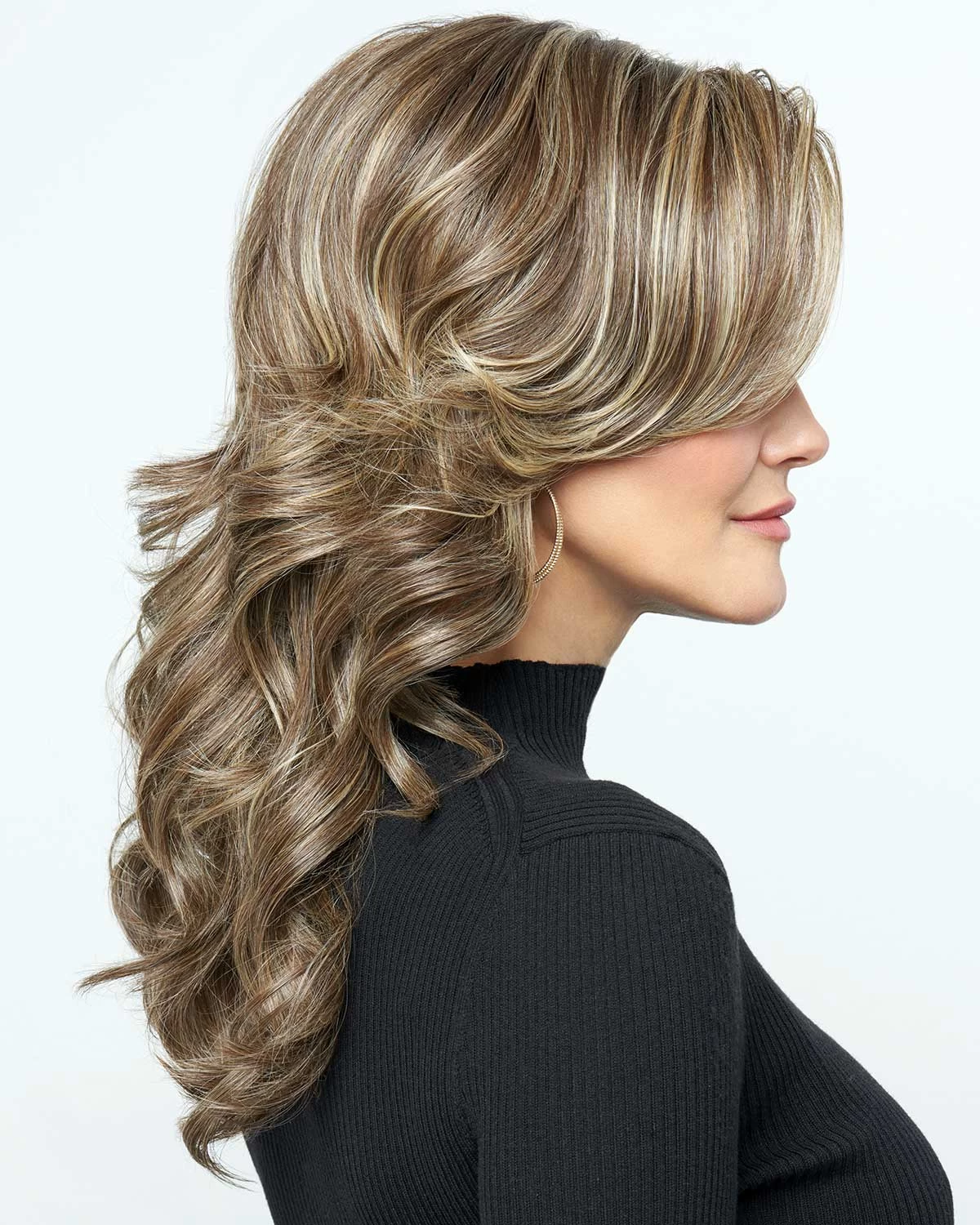 Long, luxurious tresses and bouncy, barrel curls are yours to flaunt in this Hollywood-inspired style. Brilliantly constructed with a temple-to-temple lace front, monofilament part, and Tru2Life heat-friendly synthetic fiber, this glamorous, layered creation gives you full volume fabulousness without spending hours in the salon.