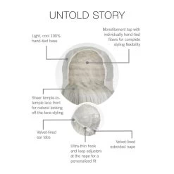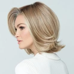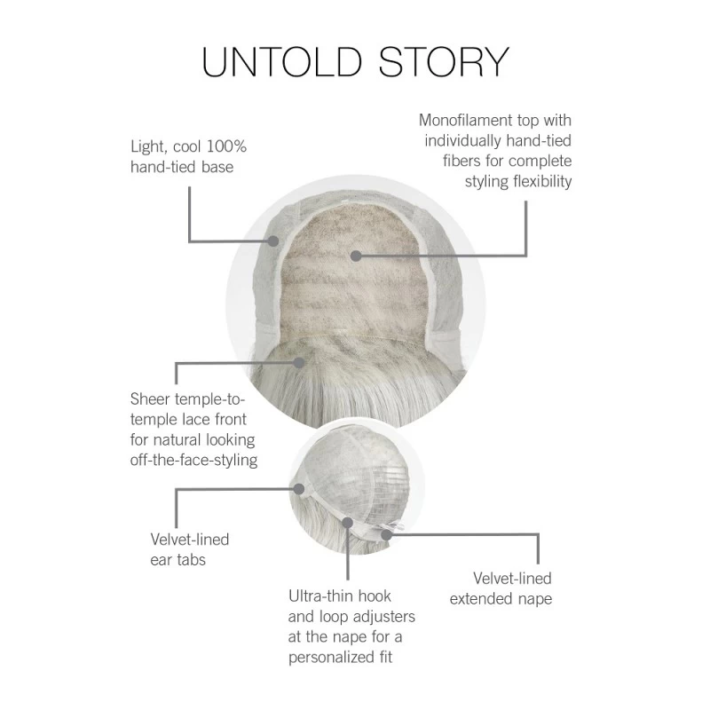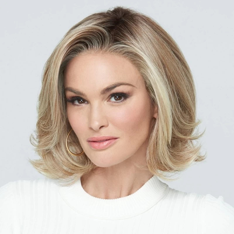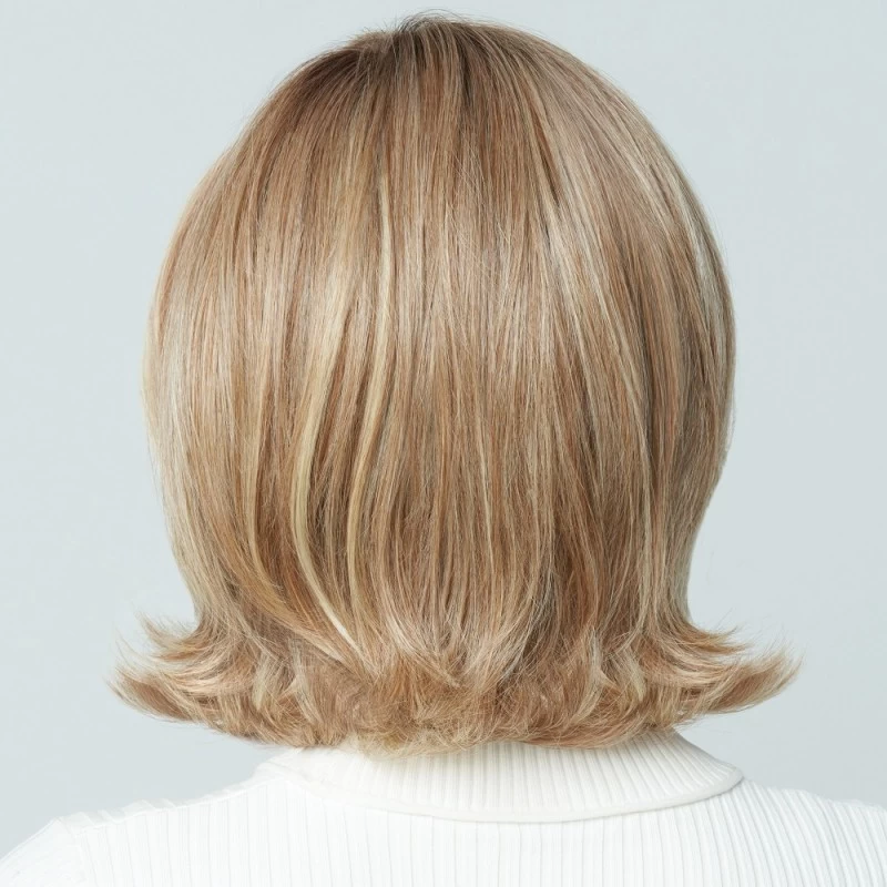 A tale of carefree elegance! Completely hand-tied with a monofilament top for unstructured, uncontrived beauty. Turn the page on beauty! She features a side-swept bang and the flair of textured ends that show off a subtle flip. Natural-looking layers that deliver body without bulk.