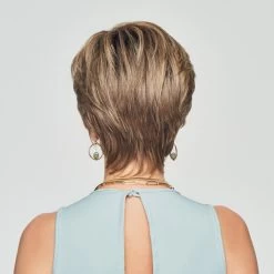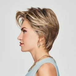 Every detail is in place and perfected from the light, feathery textured bang, to the textured back that sits close to the nape. Gentle waves flow throughout this short, cropped style. Longer layers in the front can be tucked behind the ear. The look is classic and confident.