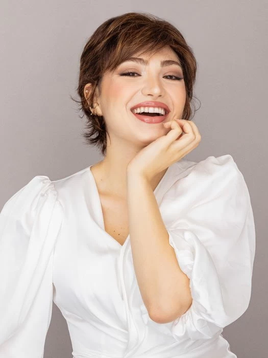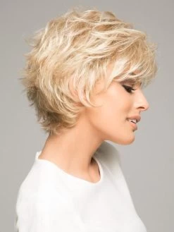 Voltage, a personal favorite of Raquel Welch is now available in Voltage Petite! This short wig is bold, textured, and features all-over layers that are feathered to perfection. The wispy bang and flared neckline make it gorgeous at every angle. This shake and go” style can be styled soft and layered out of the box, or messy and modern using the Shaping Creme by BeautiMark. The Vibralite synthetic fiber looks and feels like human hair, and is available in a variety of salon inspired hues, also available in gray colors, beautiful shades of grey.