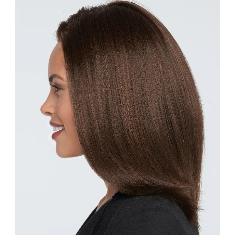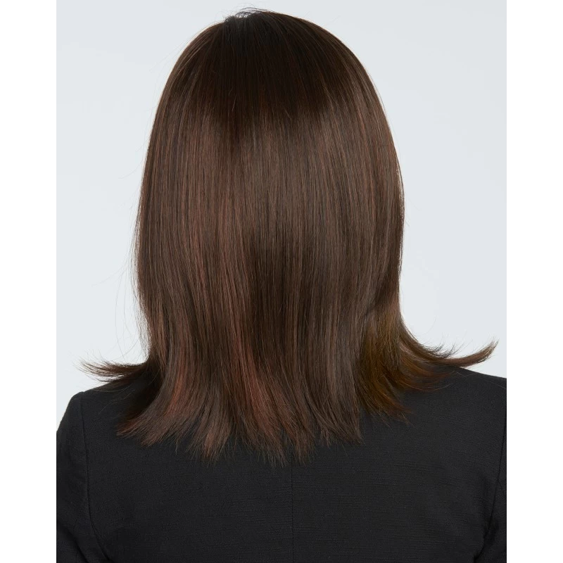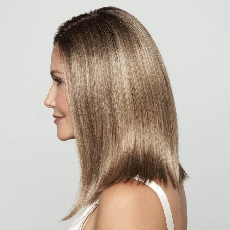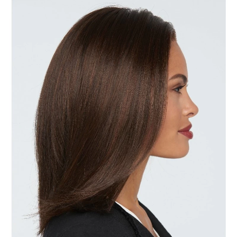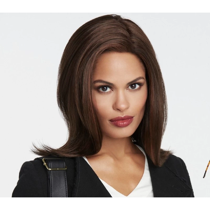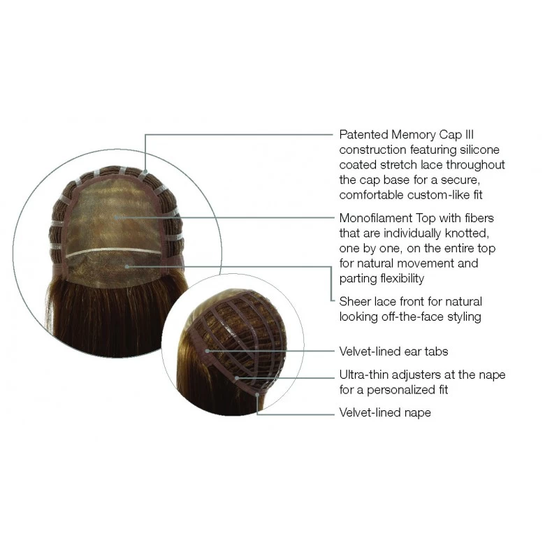 The quintessential, below-the-shoulder bob, this sleek, silhouette is punctuated with light texture to frame the face, while longer layers from the top of the style glaze over the blunt, classic shape to add a look of softness. The Sheer Indulgence lace front monofilament top allows for off-the-face styling, parting versatility and a light, cool fit. Work It features the latest cap construction technology by Raquel Welch – the Memory Cap III. The ultimate in light comfort and dependable fit, the makers of this cap took the resilient stretch lace—hallmark of the original Memory Cap design—and coated it with a flexible silicone. This ground-breaking technology yields a superbly comfortable & secure fit while simultaneously maintaining the cap’s shape. It actually molds to the shape of the head for a lighter, cooler, custom-like fit.